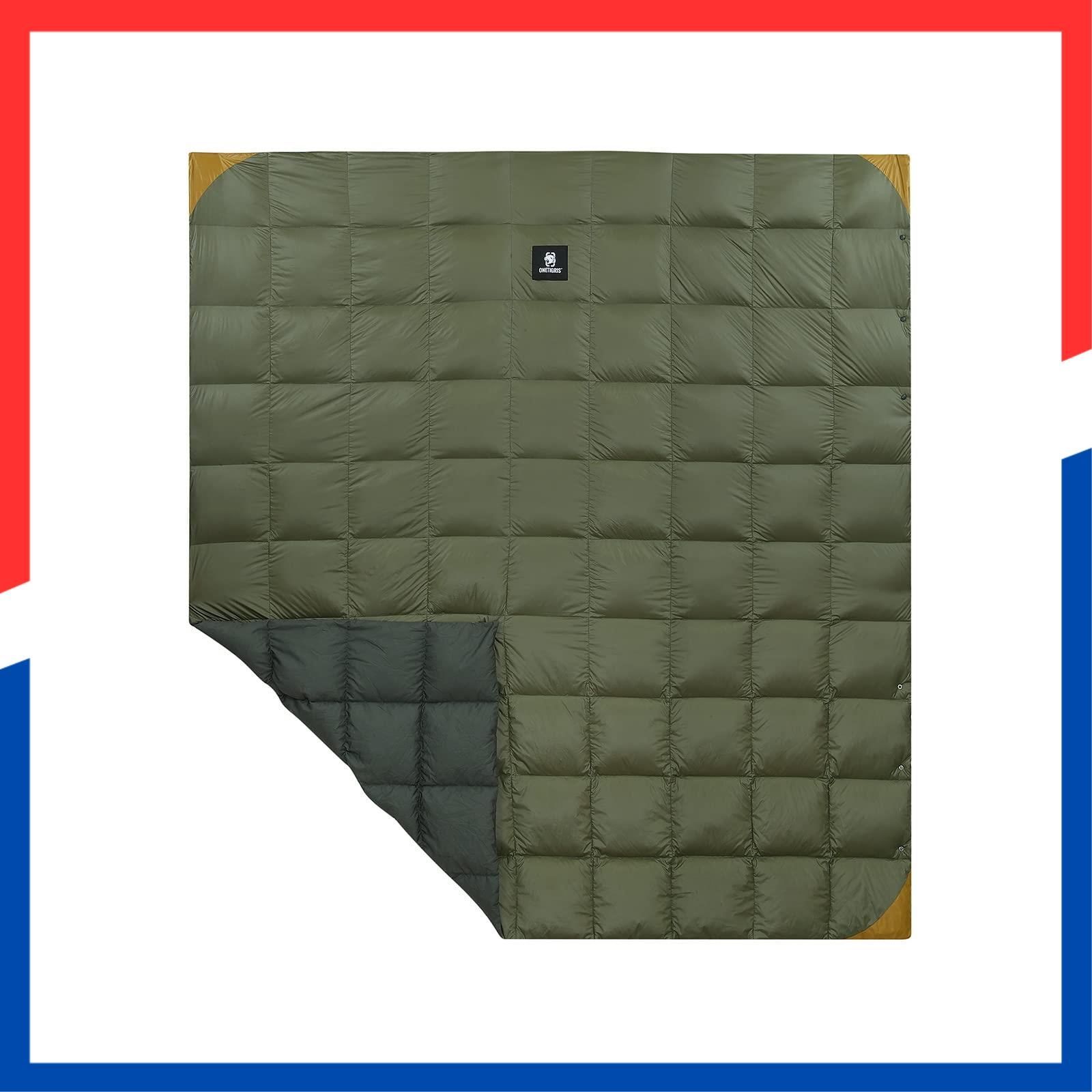 OneTigris ダウンブランケット 2人用 215 マルチブランケット 防寒 キャンプ アウトドア ひざ掛け 掛け布団 車中泊 超軽量 テント用キルト 柔らかい 暖かい コンパクト アップグレード版 膝掛け 掛け毛布 (アーミーグリーン)
