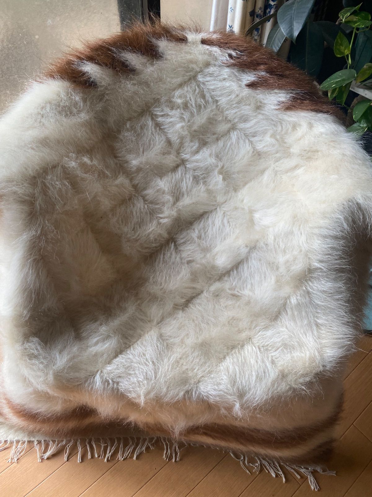 こちら通常の新しいシイルトバッタ二エにくらべ、毛量が多めの素晴らしいアンゴラ山羊100%のシイルトです!