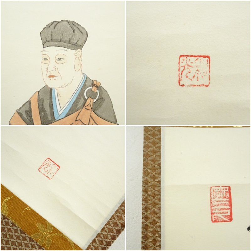 前大徳 藤井誡堂筆 利休居士像画賛 肉筆紙本掛軸 共箱 掛け軸 床の間 書 おしゃれ 絵画 表具 芸術 茶道 年中掛け インテリア 茶掛 掛物 和室