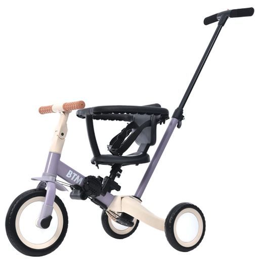 パープル BTM子供用三輪車5 in 1自転車二輪車補助輪キックバイクオリジナル押し棒付き安全バー付きキックボード自転車おもちゃ乗用玩具幼児用お祝いギフト