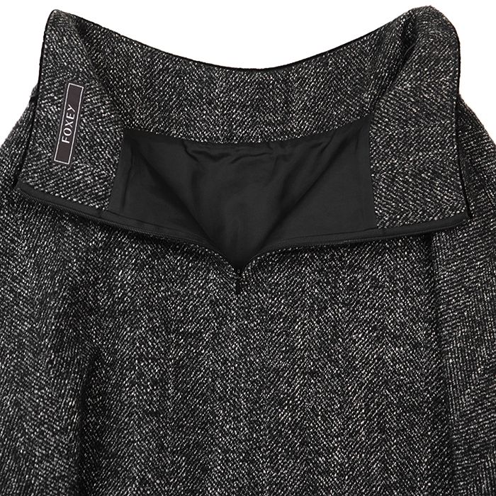 FOXEY フォクシー フ スカート ツイード ベロア パイピング メランジ ウール & アルパカ フラップポケット バックファスナー ボトムス レディース サイズ 38 チャコールグレー 39203