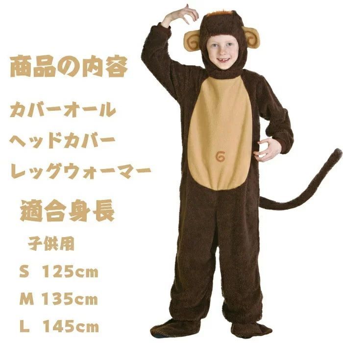 衣装 子供服 キッズ ジュニア 女の子 男の子 男女兼用 猿 モンキー 動物 アニマル 全身 コスプレ コスチ