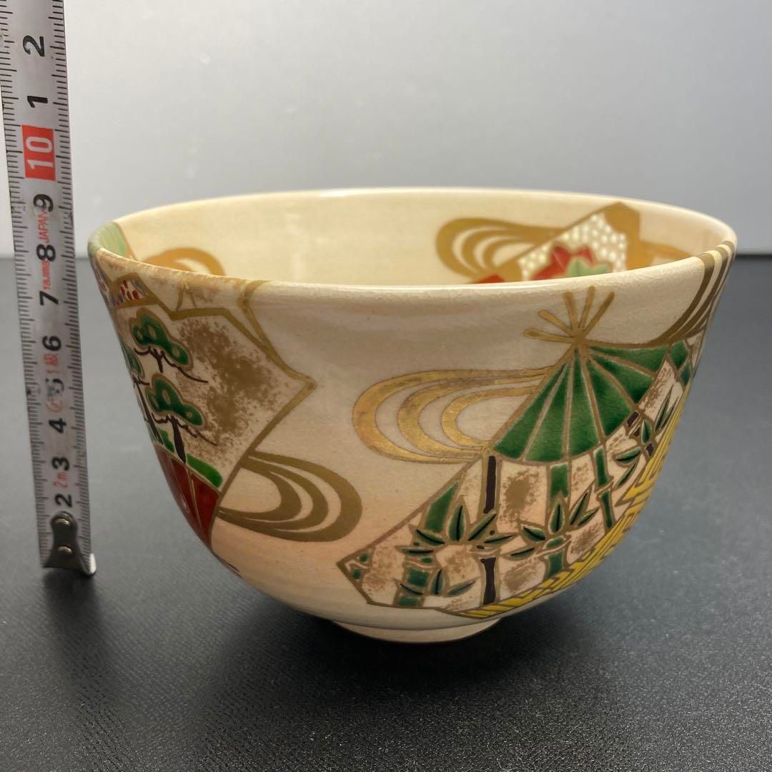 茶3 中村秋峰 仁清写扇面茶碗 共箱 直径12.7㎝ 東Y 6-0325