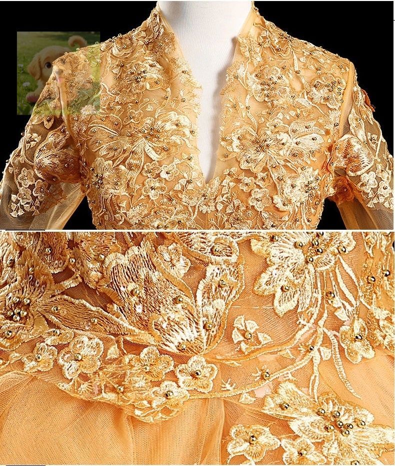 ゴールドドレス ロング袖タイプ プリンセスライン パーティードレス 二次会