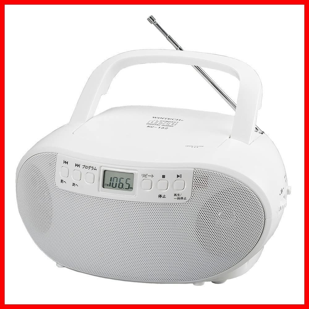 CDラジオ CDプレーヤー ポータブル コンパクト ステレオ ACコンセント 電池式 ホワイト 英会話 語学学習 リスニング ヒアリング対策 KC-132 W 廣華物産