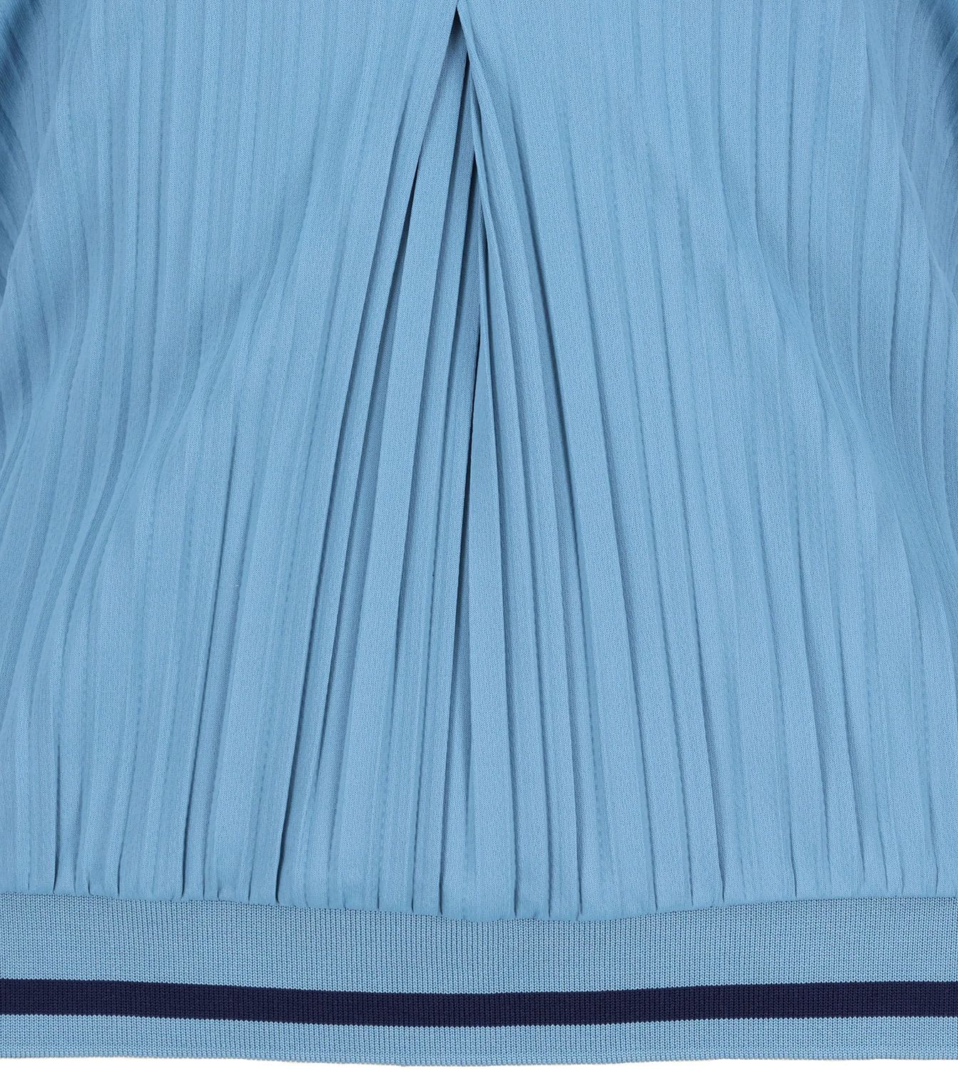 前身頃をプリーツ加工とタックデザインにすることで、他にはないシンプルながらも個性的な価値あるゲームシャツです。同色のスコートやリングプリントとのカラーコーディネートも楽しめます。