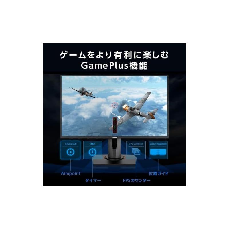 ゲーム用に特化した便利な機能として、GamePlus機能を搭載しています。Aimpointモードでは、画面上に照準を表示することができ、FPSゲームなどをより有利に楽しむことができます。タイマーモードでは画面上にカウントダウンタイマーを表示でき、RTSゲームなどで経過時間を画面で知ることができます。また、画面のリフレッシュレートを表示できるFPSカウンターモードなど、ほかにも便利なモードを備えています。