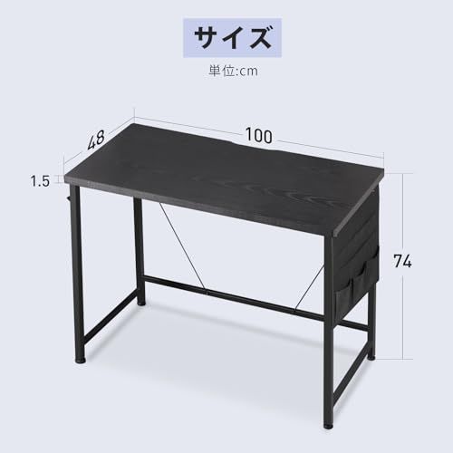 黒い 100*48 【大きな作業台と収納スペース】机の上は大きいので,パソコンと周辺機器を並べて置くことができ、手元がゆったり使える広さがあります。デスクは丈夫な収納袋とフックが付いておりますので、書類、カバン、ヘッドフォンなどの収納がとても便利になり、天板がすっきり片付けられます。