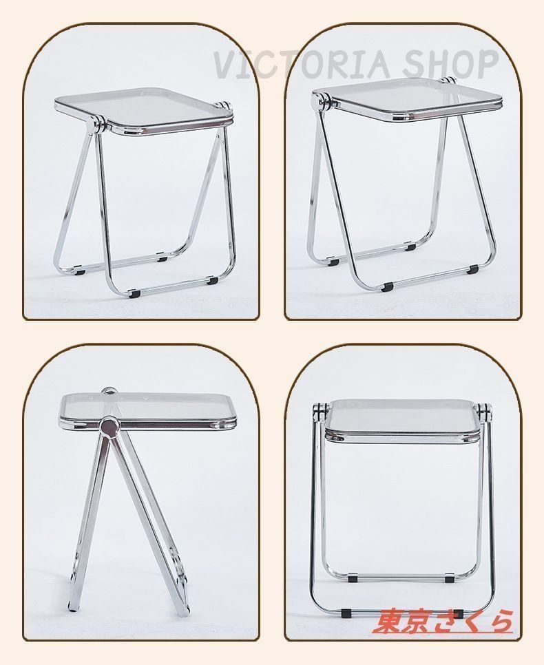 こちらは、シンプルで折りたたみ可能なサイドテーブルです。クリアデザインがおしゃれで、どんなインテリアにもマッチします。コンパクトで正方形の形状は使いやすく、リビングやダイニング、寝室、ソファ脇や玄関など、さまざまな場所で活躍します。カラーバリエーションも豊富で、お部屋のスタイルに合わせて選べます。折りたたみ式でポータブルなので、簡単に持ち運びや収納ができる便利なアイテムです。スタイリッシュで機能的なこのテーブルは、日常使いにぴったりです。