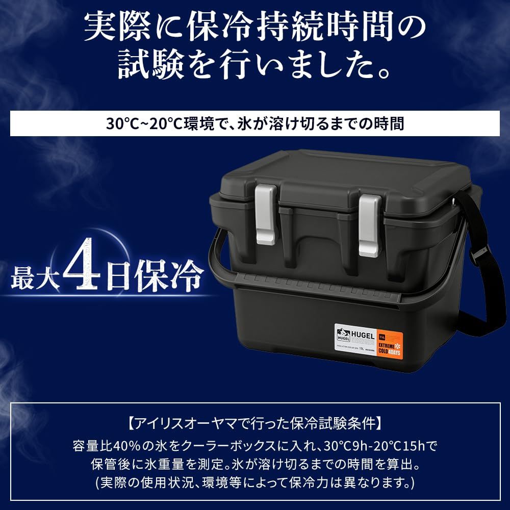 HUGEL 真空断熱クーラーボックス 15 L VITC-15 チャコールグレー 肩掛けベルト付き