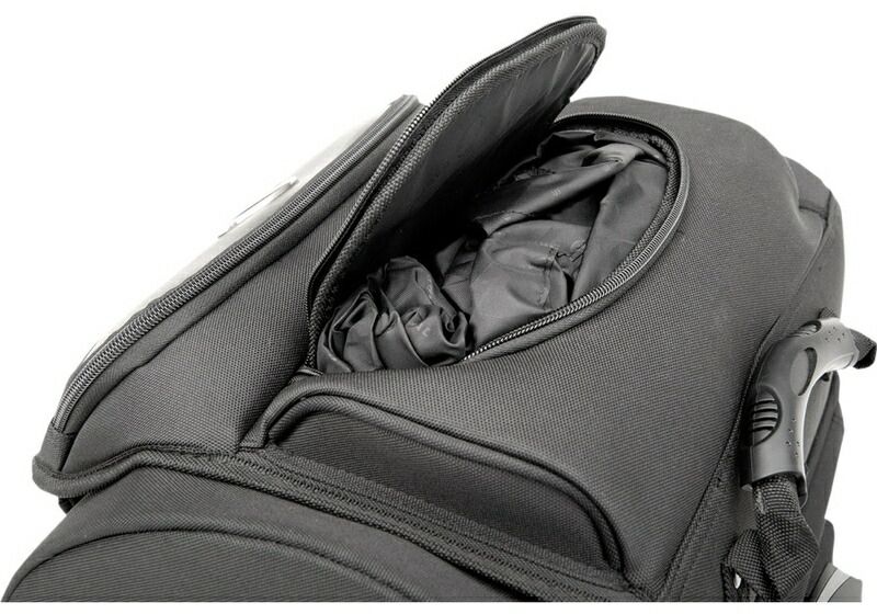 広々としたトップローディングのメインコンパートメントは、1つのフルフェイスヘルメットと他の荷物を入れるのに十分な大きさです。