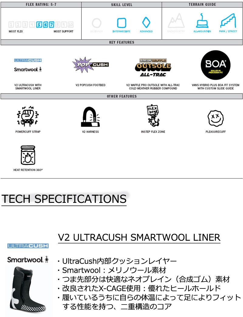 さらに、V2 UltraCush Smartwoolライナーの快適さと暖かさ、V2 Waffle Proアウトソールによる高い地形対応力など、Invado Proはどんな状況でも真のプロレベルの性能を提供する。