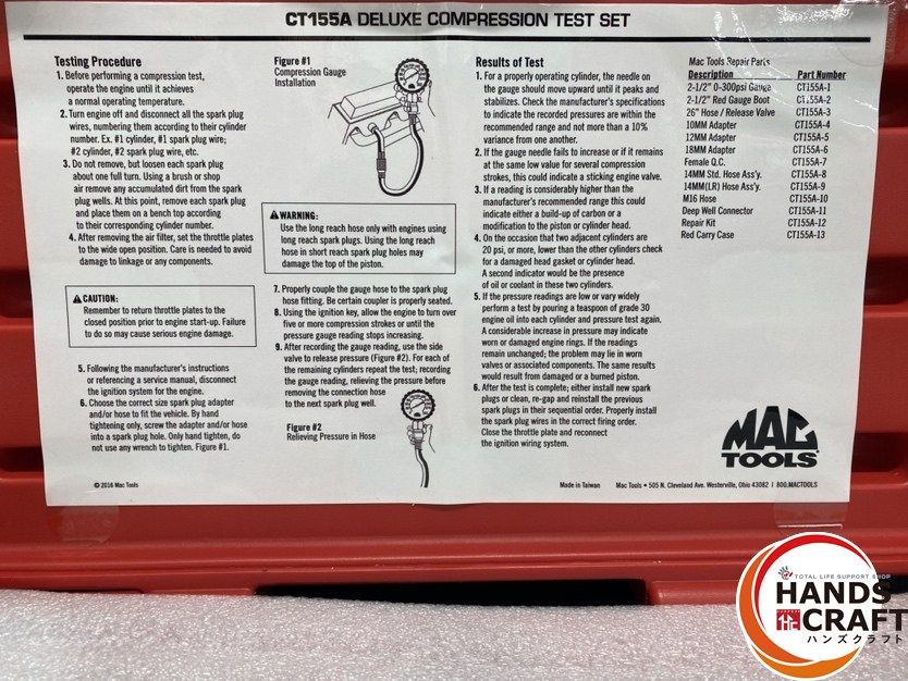 ● ♥品 MAC TOOLS マックツールズ CT 155 A デラックス コンプレッションテストキット コンプレッションテスター ケース入り