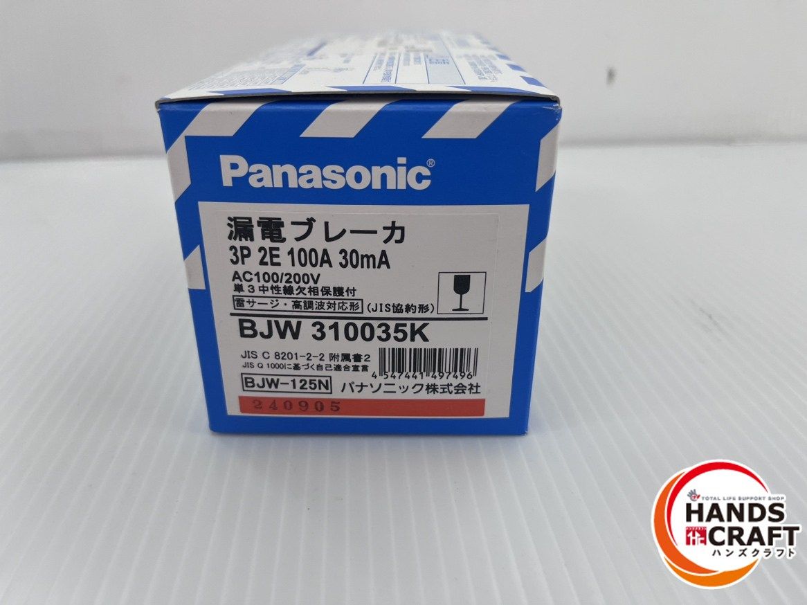 パナソニック Panasonic 漏電ブレーカ BJW-125 N 3 P 2 E 100 A 30 mA BJW 310035 K