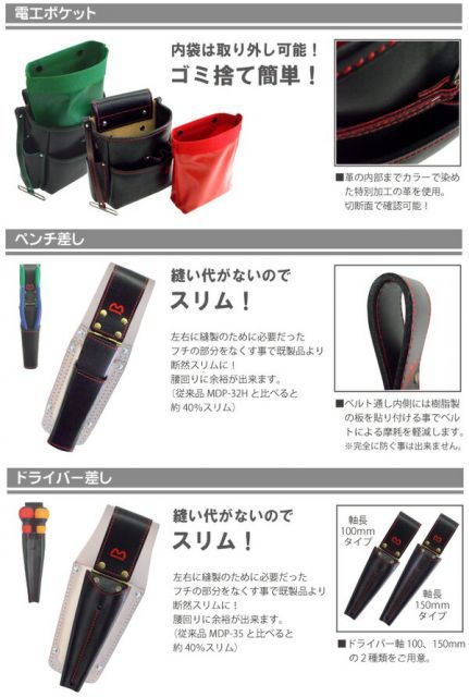 電工ポケット WAIST GEAR ドライバー差しスリムタイプ レッド 赤 マーベル MDP 36 SR