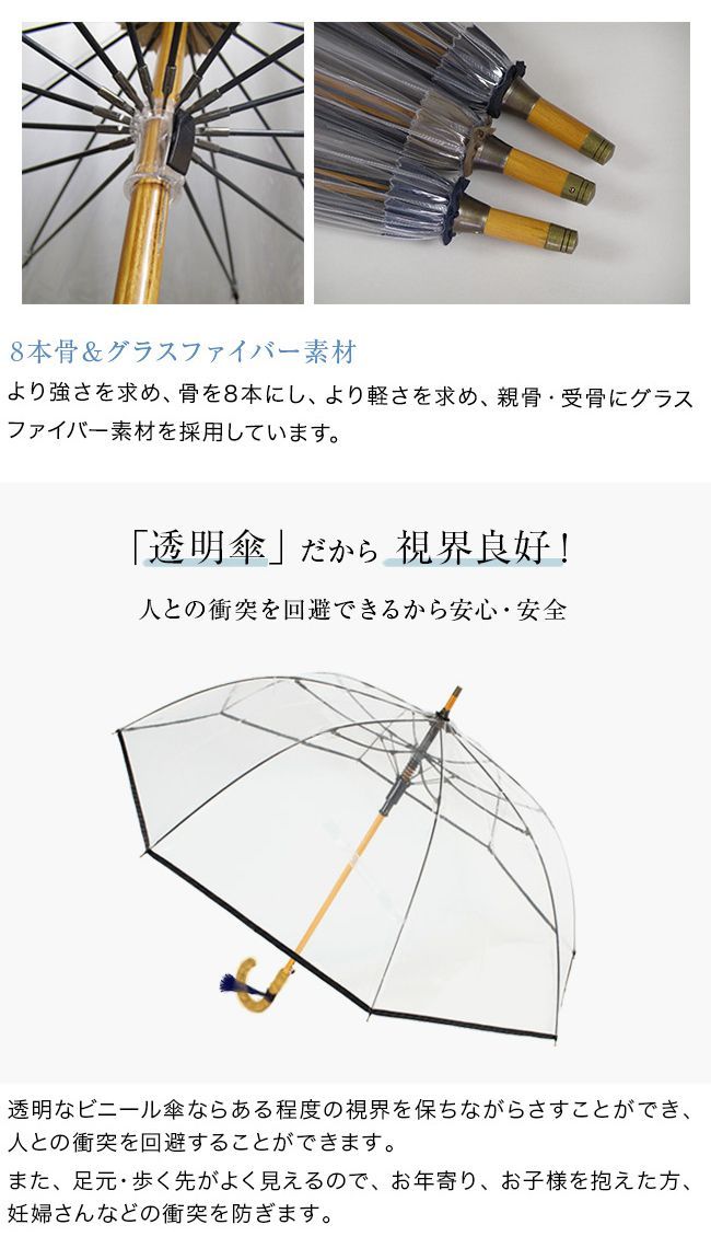 日本製 ブランド 透明 雨傘 8本骨 風に強い 大きい