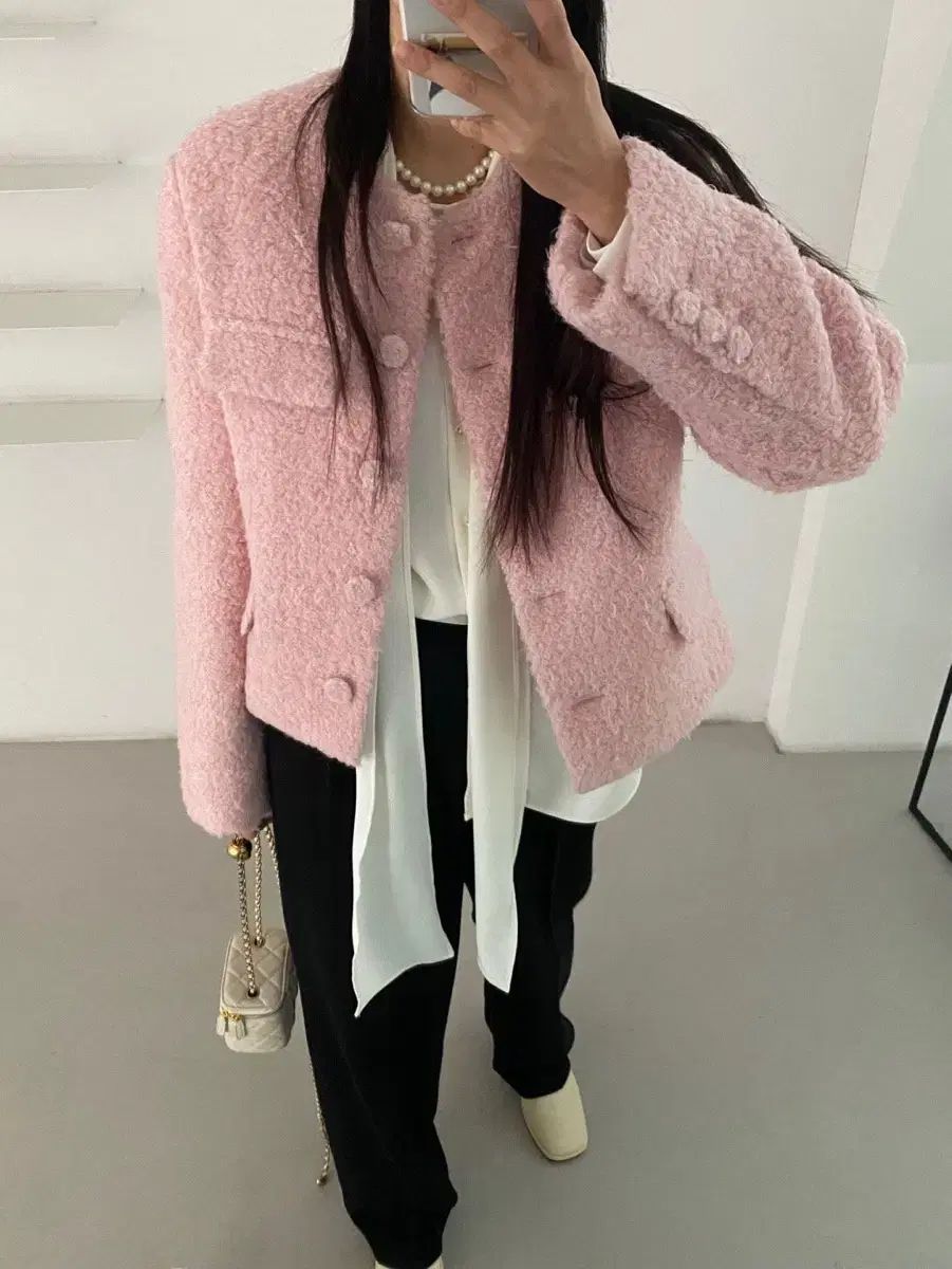 デュフロ アンゴラ ウール ピンク ツイード ジャケット