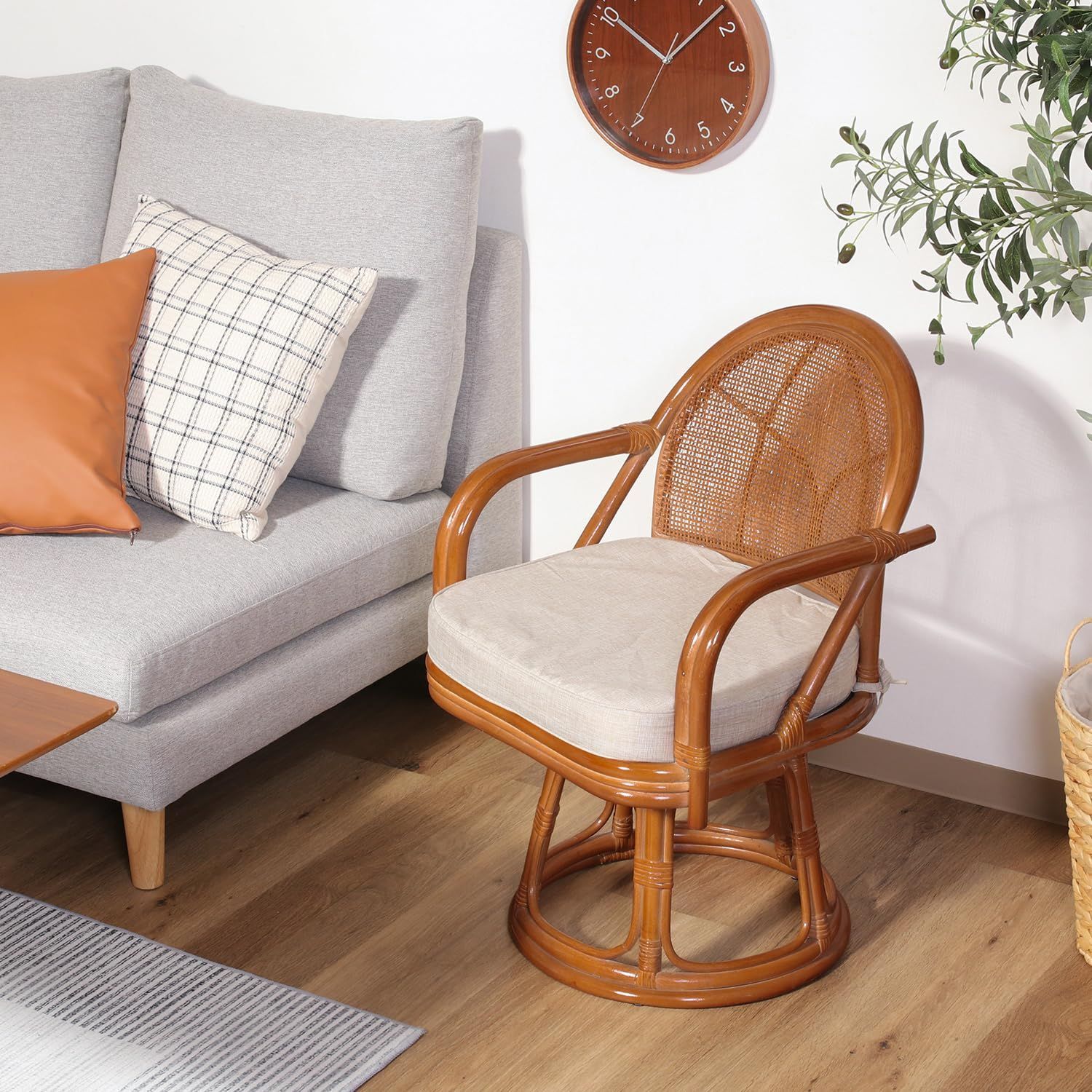 くるっと回転、ラクラク立ち座り! ラタンチェア ミドル