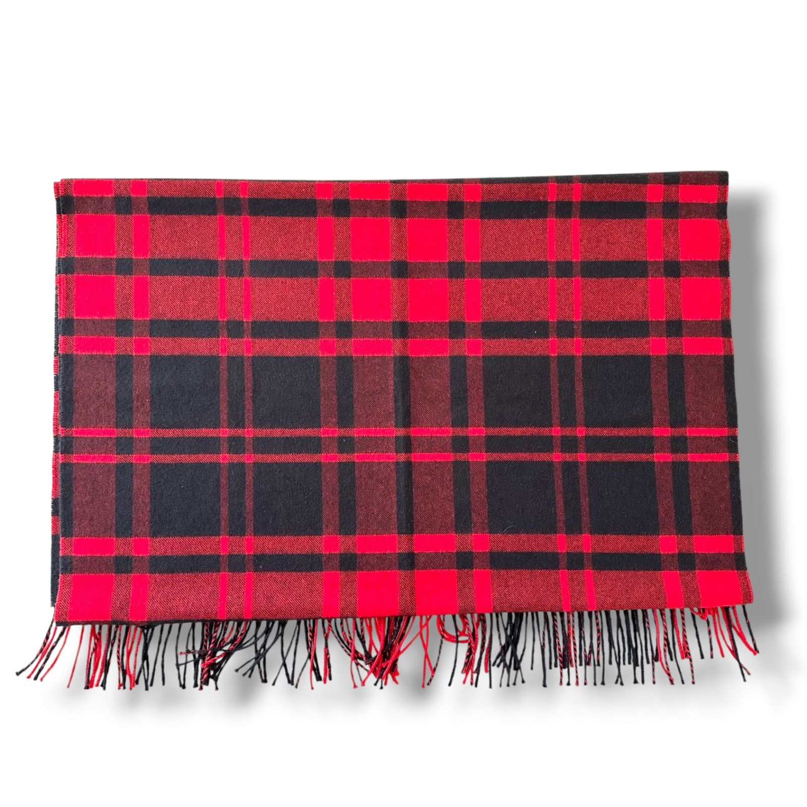 ジョンストンズオブエルガン ドゥロワー別注 カシミヤ 大判ストール チェック柄 レッド×ブラック スコットランド製