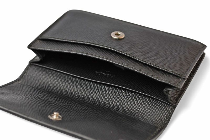 プラダより、使いやすいカードケースです。下部にはPRADAのロゴプレート、シンプルながら高級感を感じさせます。マチ付きで、収納力があります。ビジネスシーンにもスマートに決まります!コンパクトサイズで、ジャケットの内ポケットなどにも、スマートに収納が可能です。【 用途 】カードケース、コインケース、名刺入れ、小銭入れ