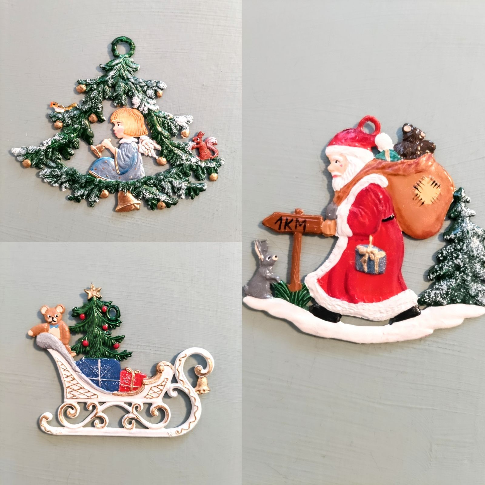 ベルと天使Bオーナメント- ソリBオーナメント-歩くサンタクロースオーナメント 3点セット