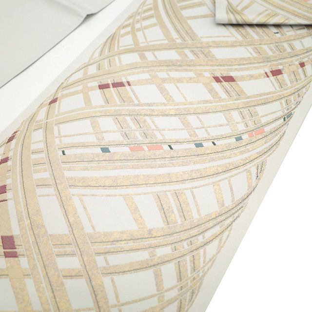 やさしい白グレーの地に、上品な金糸で流線文が織り出された一本。