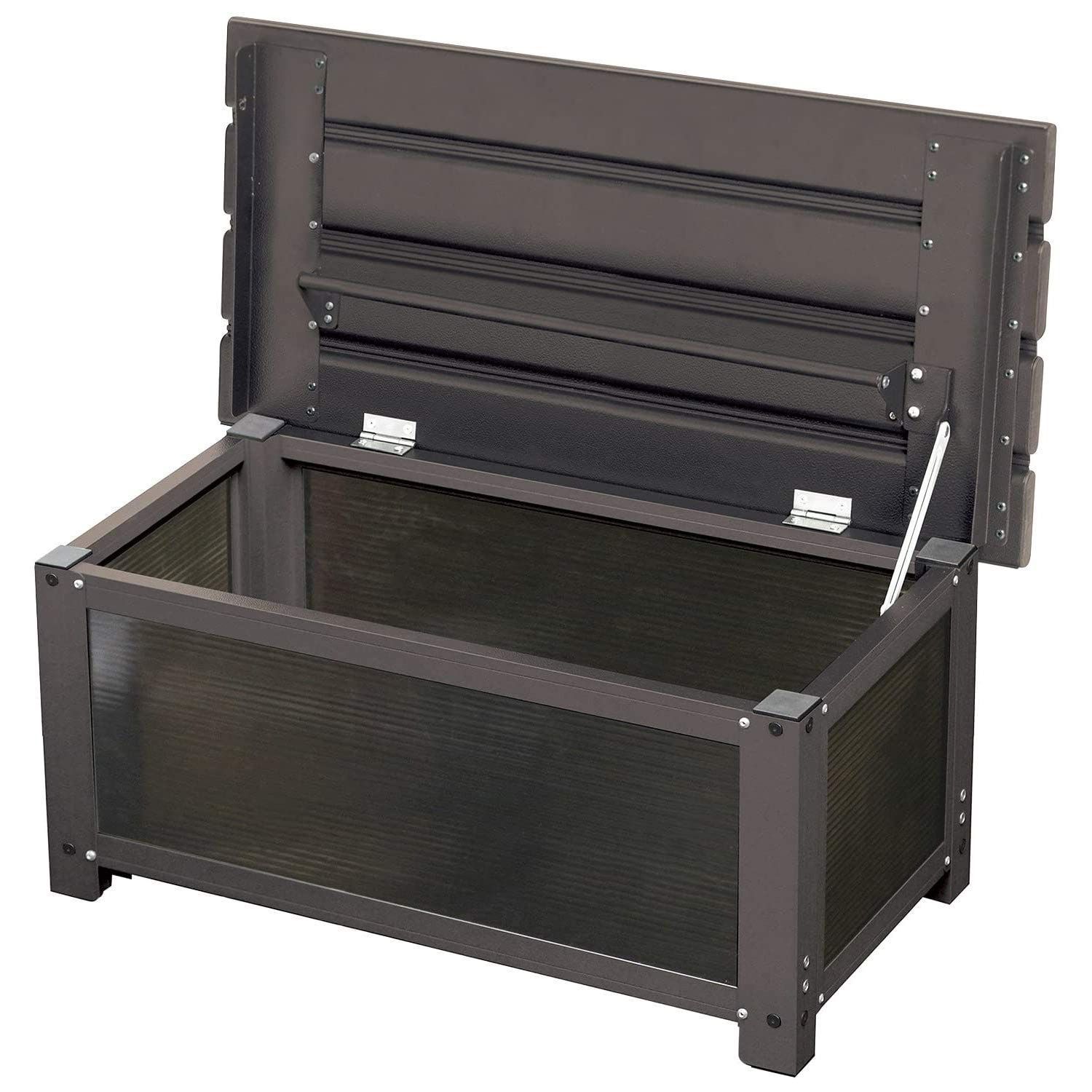 [ガーデンマスター] ステップストッカー 幅74×奥行36×高さ32cm アルミ天板 ベンチストッカー ベランダ バルコニー 軽量 踏み台 玄関台 お庭 ガーデンマスター ダークブラウン KSS-74H