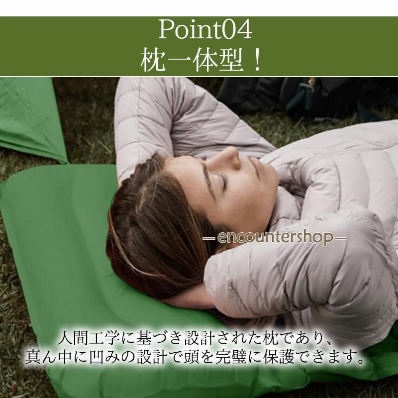 エアーマット 足踏み式 無限連結 コンパクト 車中泊 マット 軽量 落下防止 両サイド厚め構造 防水 防潮 収納ケース ゴムバンド 枕付き アウトドア 防災 マット キャンプ用 ドライブ ツーリング テント泊 山登り お花見