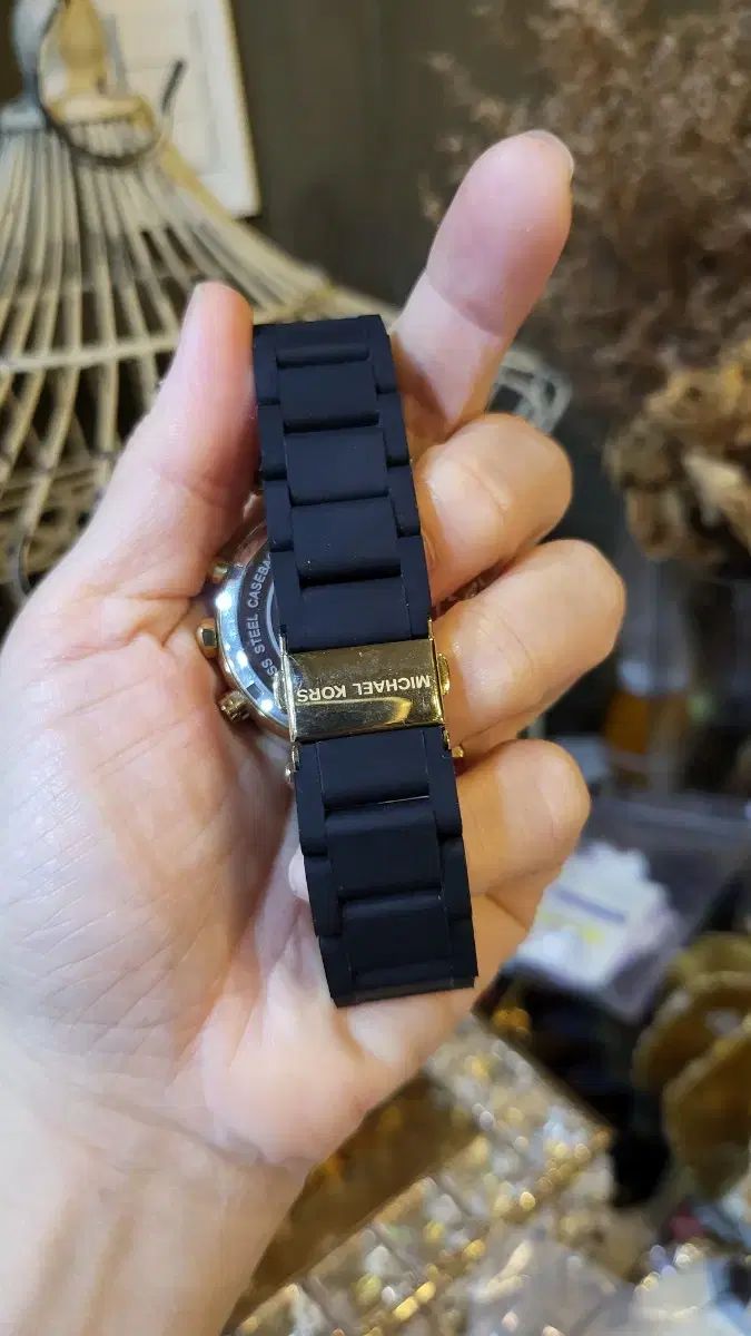 MICHAEL KORS マイケル コース ブラック シリコーン ストラップ バンド 時計 金 キュービック