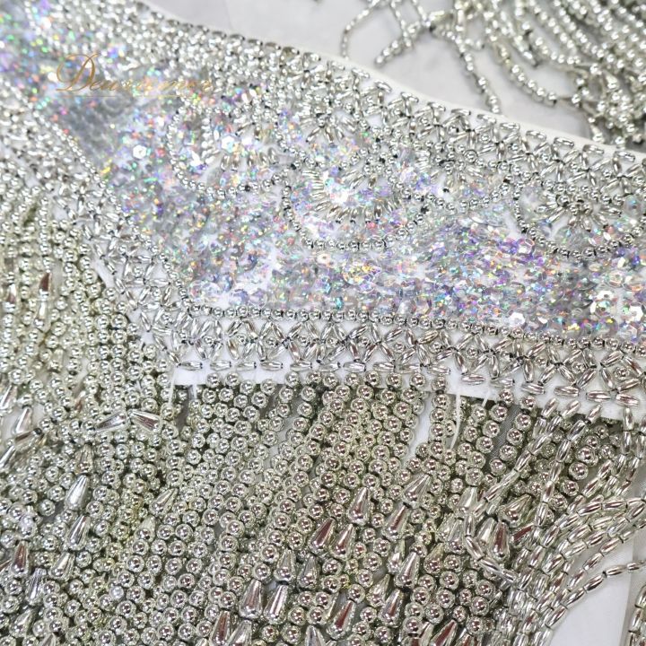 ベリーダンス オリエンタル 衣装 上下セット ホワイト系 白 シルバー系 スパンコールラメ ビーズ 装飾 フリル レース 舞台 発表会 イベント 派手な セットアップ 女性用 ダンスコスチューム パフォーマンス エレガント