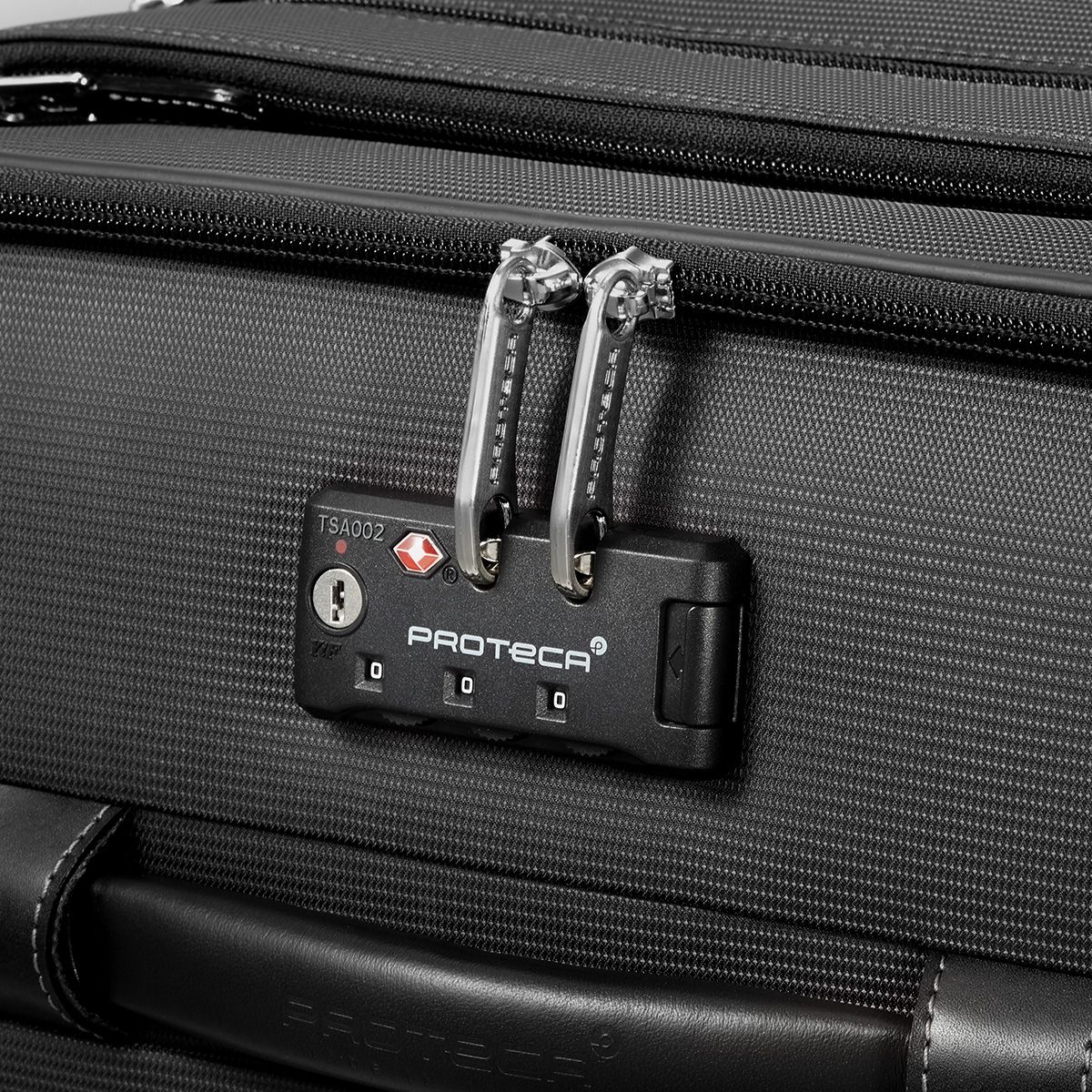 セキュリティ面ではカギや南京錠の持ち歩きが不要な3ケタのダイヤル式TSAロックを装備。TSAロック搭載のラゲージは、TSA職員が特殊ツールで解錠・検査するので、施錠したまま預けることができます(注)。