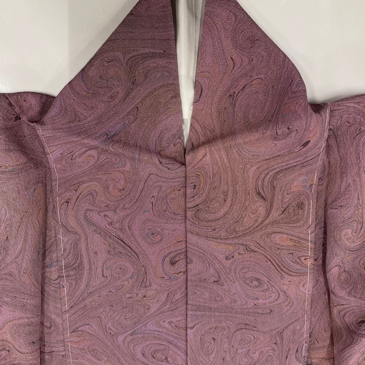 小紋 身丈152 cm 裄丈62 S 袷 落款 墨流し ぼかし柄 薄紫 正絹