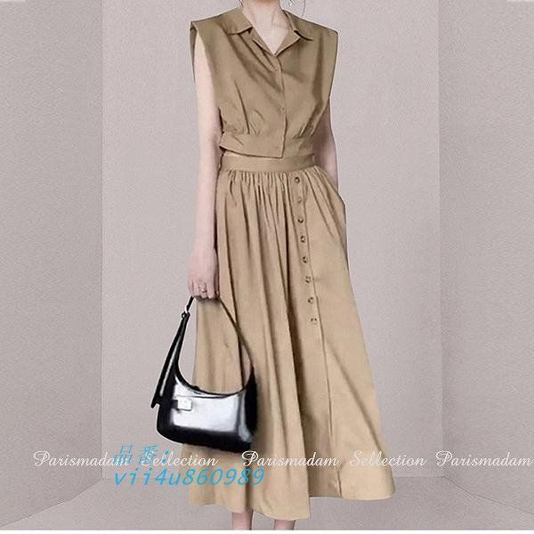 ブラウススカート セットアップ フレンチスリーブ ショート丈トップス ロングスカート ギャザースカートベージュ お出かけ女子会20代30代40代 vii 4 u 860989