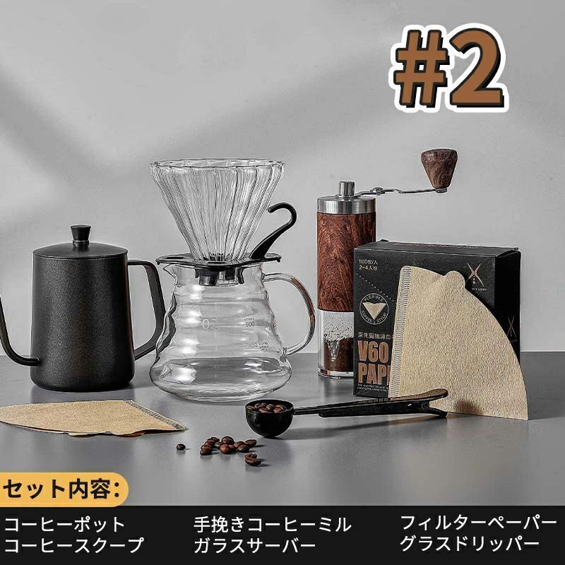 コーヒーミル 6点 セット アウトドア outdoor セット手動 手挽き コーヒーメーカー V 60 ドリッパー ケトル サーバー マグカップ フィルター バッグ キャンプ
