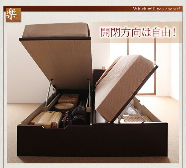 収納ベッド レギュラー セミシングル 横開き 夕月 マルチラススーパースプリングマットレス付 ナチュラル 開閉タイプが選べるガス圧式跳ね上げ大容量収納ベッド ユフヅキ