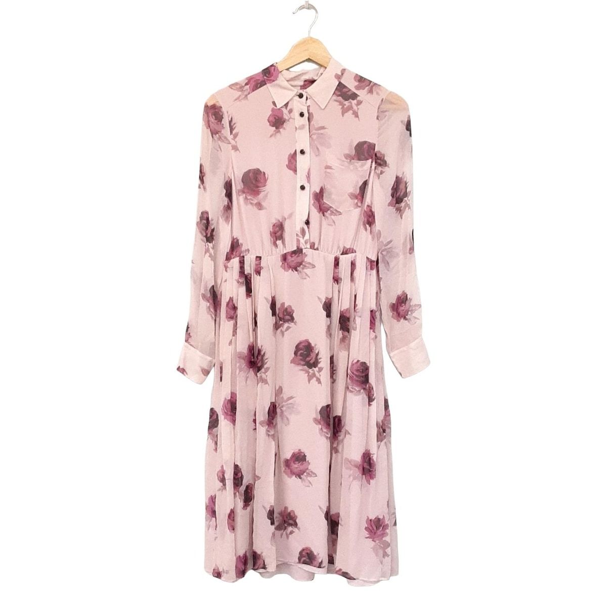 ケイトスペード ワンピース サイズ2 S レディース - ライトピンク×ボルドー×マルチ レギュラー 長袖 ロング シルク 花柄