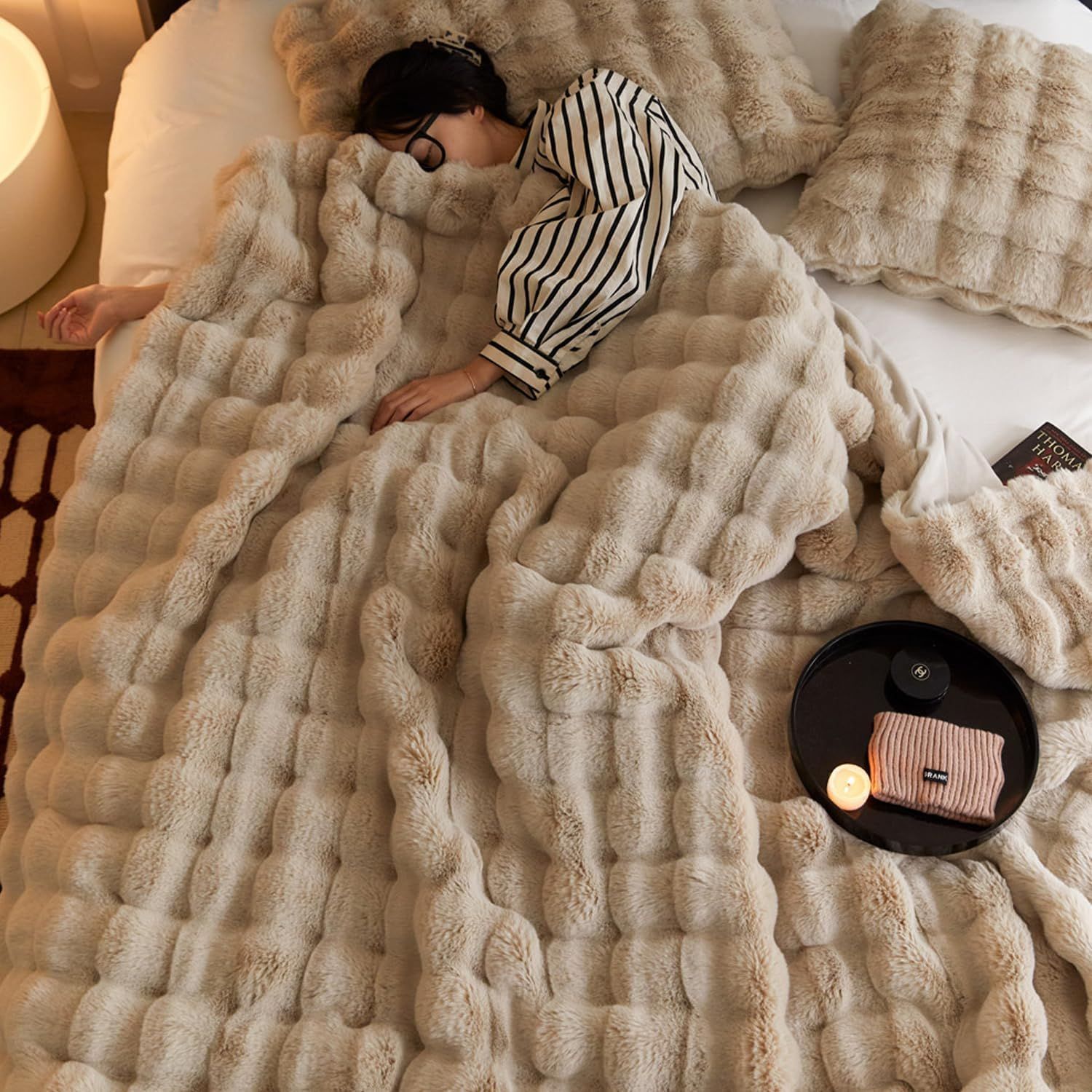 【今の話題のふわとろ毛布!】TV・SNSでも話題になった大人気のふわとろ毛布!ラビットファー調二枚合わせ毛布、両面ふわふわ素材、高級感up、保温性が良い!おしゃれなお部屋を演出し、寒い冬でも暖かくお過ごしいただけるブランケットです。