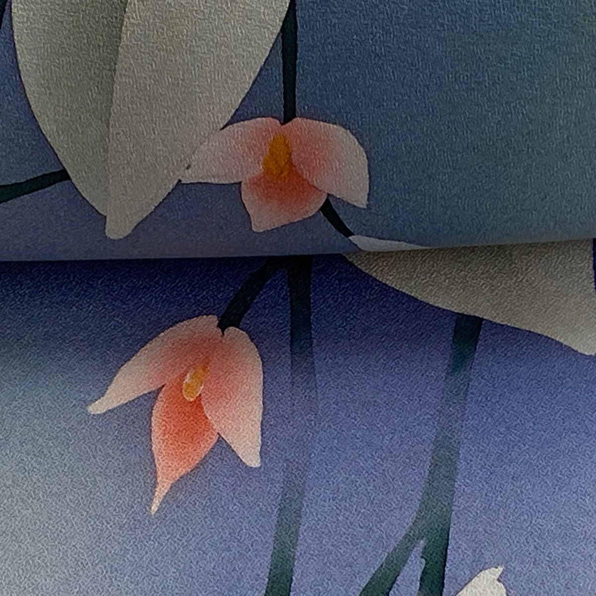 反物 秀品 小紋 枝花 ぼかし 青灰色 正絹