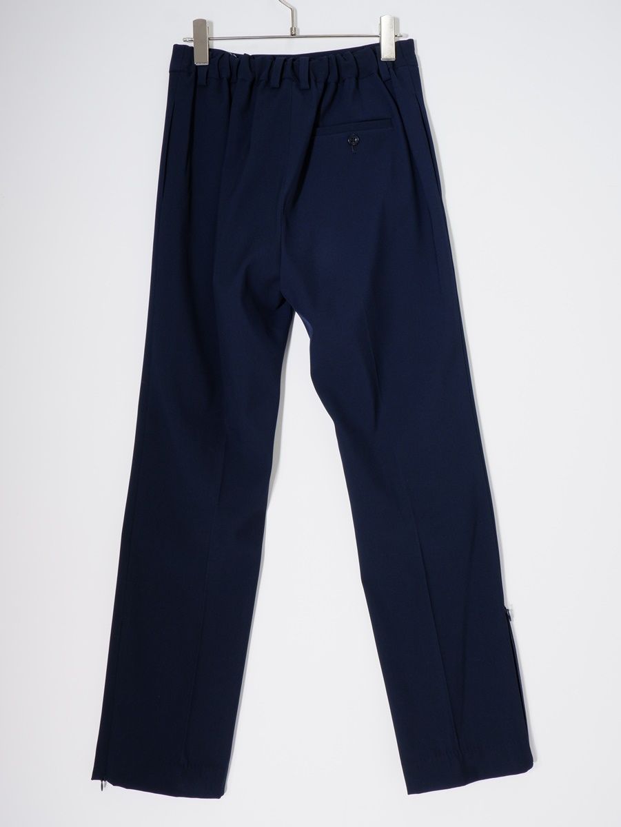 【商品情報】品番22030560105210。ウエストがバックゴム仕様のストレートパンツ。深めな股上は腰をしっかり包み、裏地が付いているのでフィットさせてもラインが響きにくい。裾はジップでスリットが入ったようなデザインで穿け、足の甲に乗るように少しジップを開く事でより足長効果を実感。またシューズに合わせてもZIPの開き具合を調節すれば、フラット・ヒールと多様な足元コーデも楽しんで頂けます。