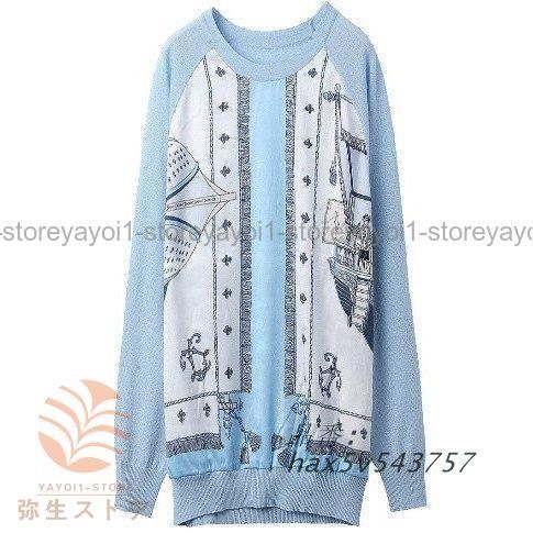 セーターブラウスシャツトップスTシャツチュニックレディース大きいサイズ母親夏きれいめブルー水色ライトブルー長袖サマーニット [CCM74]