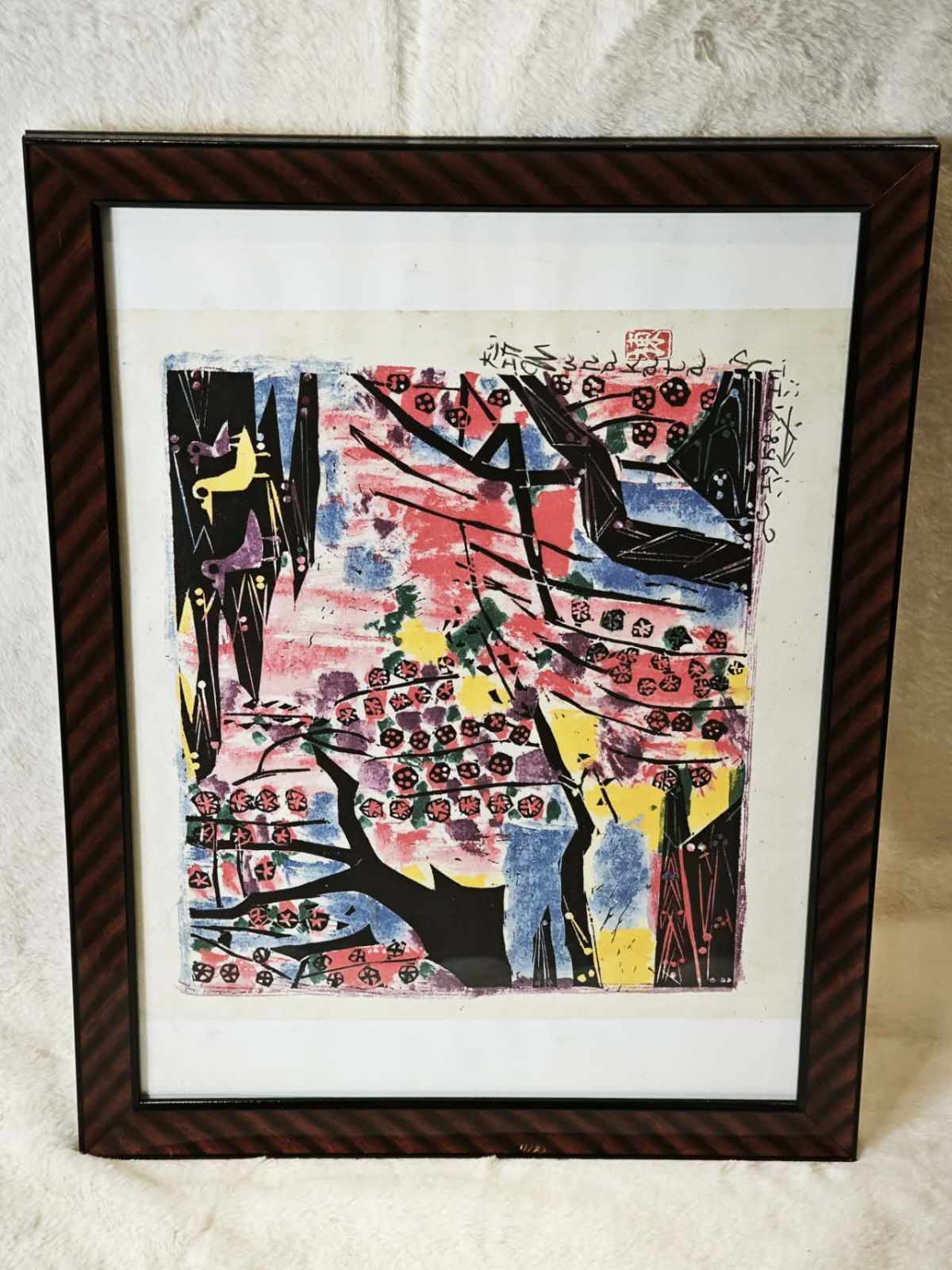 棟方志功 水彩画ジクレ-版画 春 玖珠郡 額装 書斎の装飾 落款入り