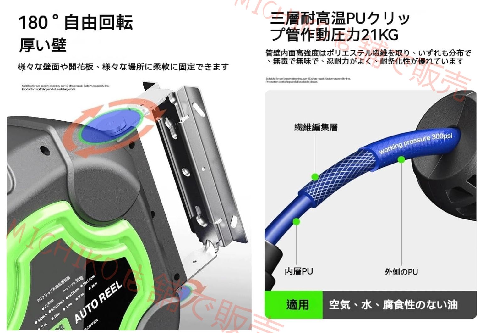 この強力な格納式ホースリールで、庭の水やり、洗車、その他の場所の掃除をお楽しみください。ホースの絡みを防ぐ位置決めボール設計と、耐久性と柔軟性に優れた3層の耐高温PVC糸チューブが特徴です。