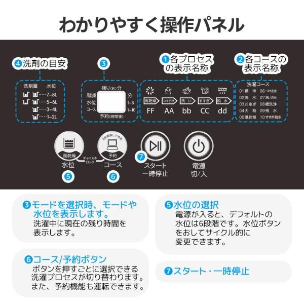洗濯機 大容量 家族用 8 kg 全自動洗濯機 縦型洗濯機 風乾燥モード 8段階水位 洗浄力抜群 チャイルドロック ステンレス槽 槽洗浄コース 新生活 爆買