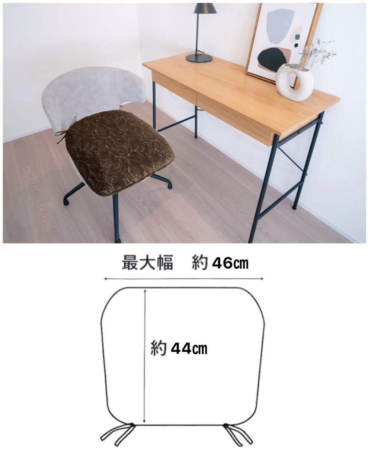 組 シートクッション いす用 車 ひも付き 馬蹄型 座布団 花柄 モダン ブラウン シェニール織 両面使える へたりにくい中綿 カバーが外せて洗える