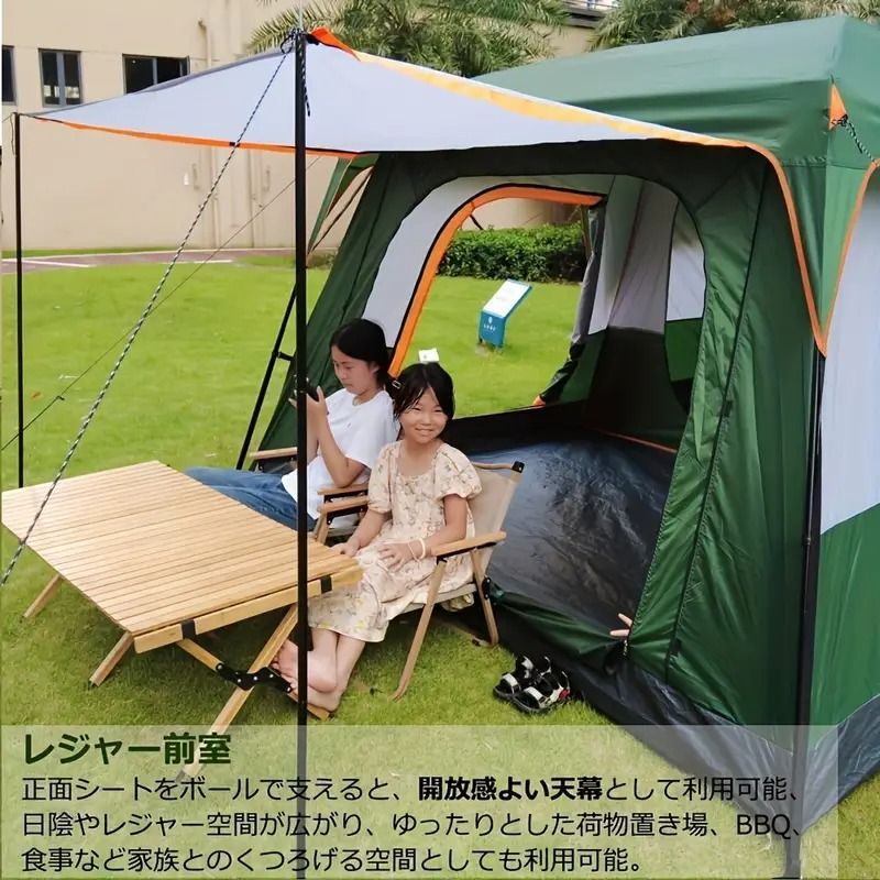 キャノピーテント 6-12人用 ファミリーテント 二重層 防雨 日よけ リビングルーム付き フルクローズ アウトドア キャンプ 家族向け