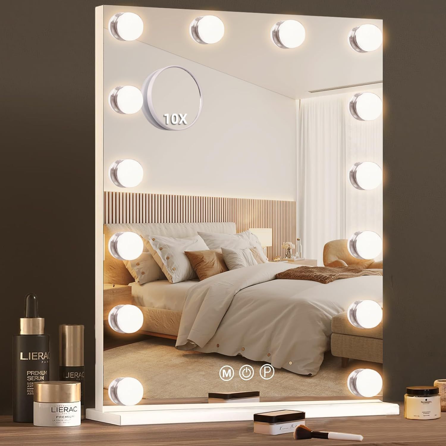 Color:40-50cm-white Hansong 女優ミラー ハリウッドミラー 女優鏡 化粧鏡 卓上ミラー 鏡 大きい 卓上/壁掛け両用 縦長 上半身の雰囲気に映し出し 3色ライトモード 明るさ調節でき 14個LED電球付き 10倍拡大鏡付き 40x50cm 白