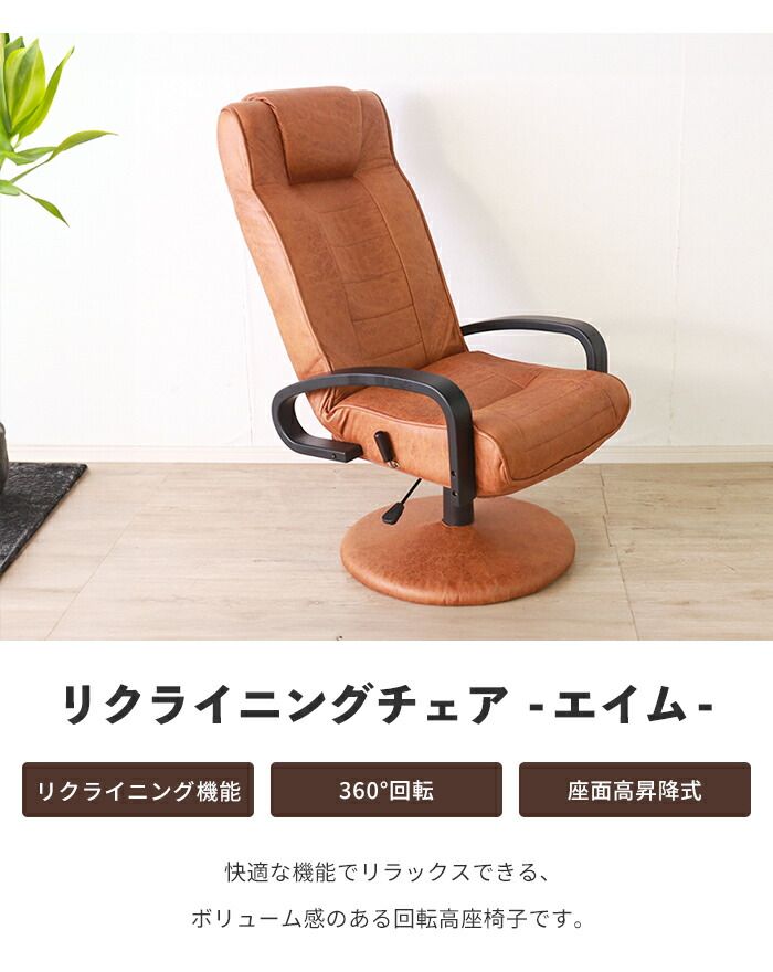 椅子 回転式 リクライニングチェア いす 回転チェア ソファ リクライニング椅子 ハイバック 背もたれ 高座椅子 1人掛け レザー