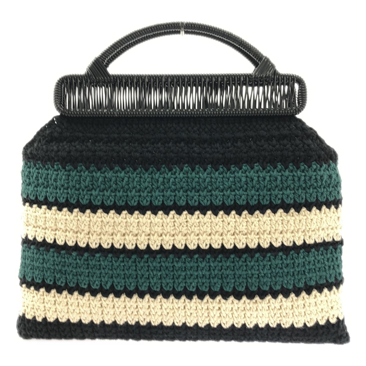 MARNI マルニ MARKET CROCHET BAG クロシェ ニット ハンドバッグ グリーン ブラック アイボリー系 レディース