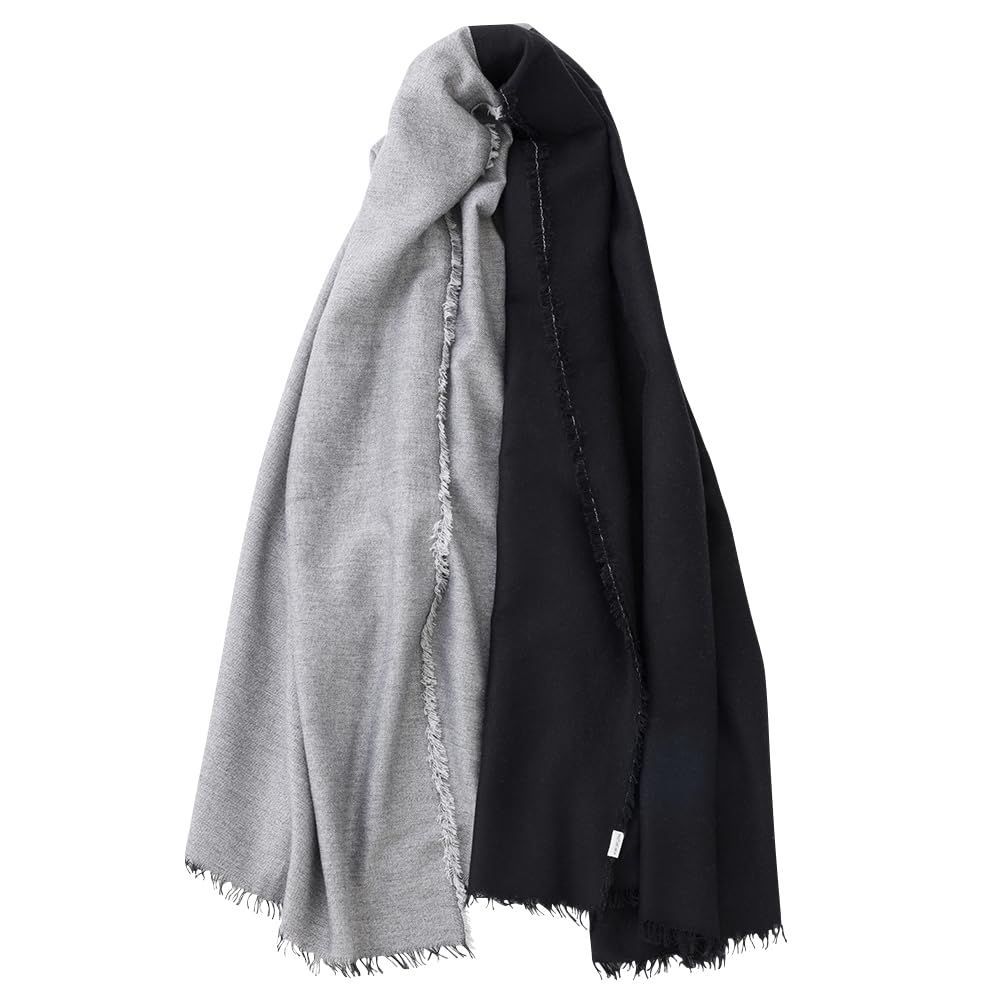 ブラック/グレー [HaTaKaKe] バイカラーコットンカシミヤストール (ブラック×グレー)