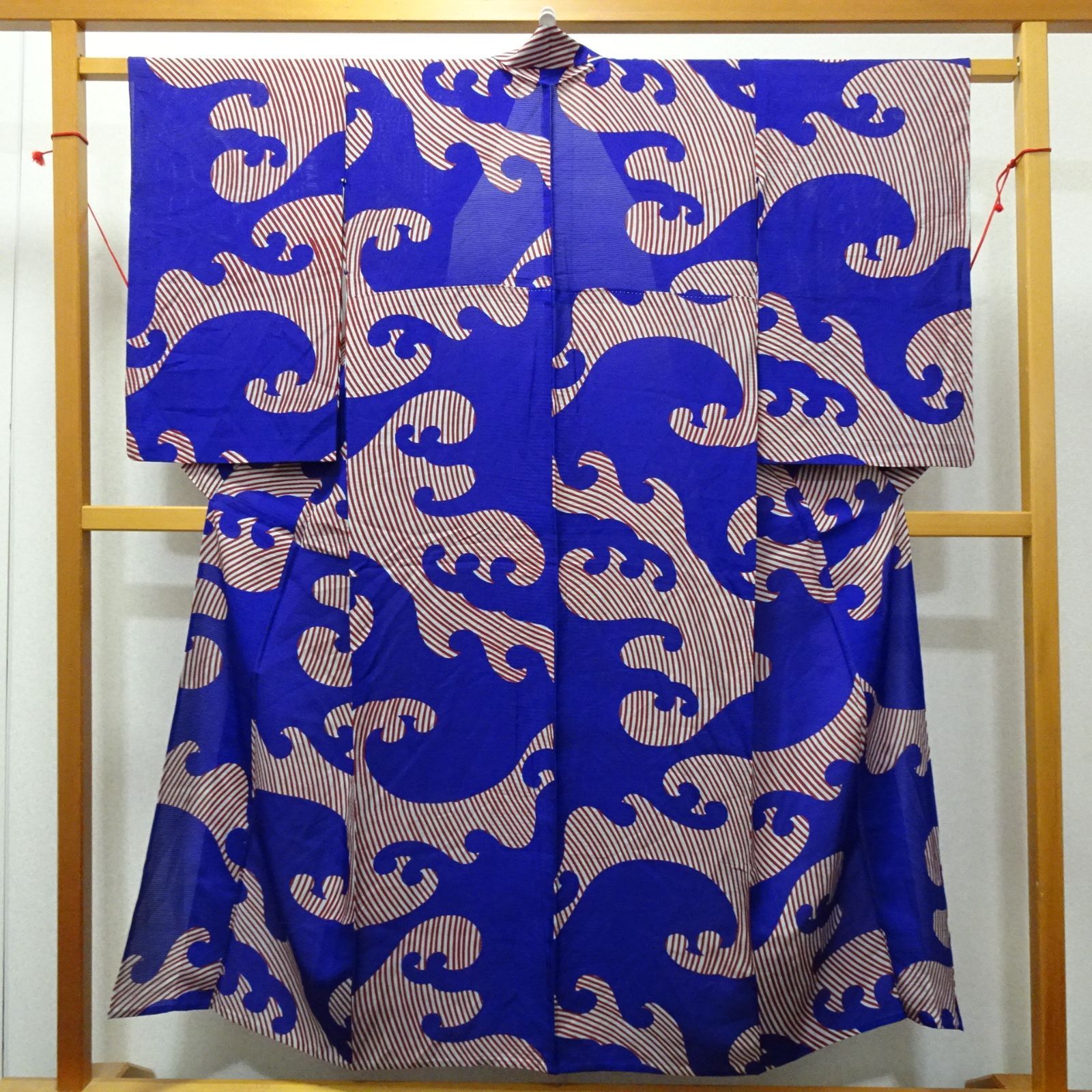 アンティーク 絽 夏着物 大正ロマン アールデコ 波 94925